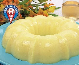 Gelatina de agua 20 gr de grenetina Duché del chef 5 ml de esencia sabor durazno Duché Colorante color amarillo naranja Duché 1 pizca de ácido cítrico Duché 2 y 1/2 tazas de agua 125 gr de azúcar refinada Molde con capacidad para 1 litro 2 tazas de duraznos en almíbar en cubos Preparación Para […]