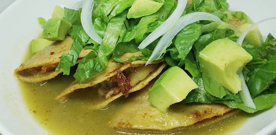 10. Bañar con un poco más de caldillo y decorar con lechuga, cebolla y aguacate.