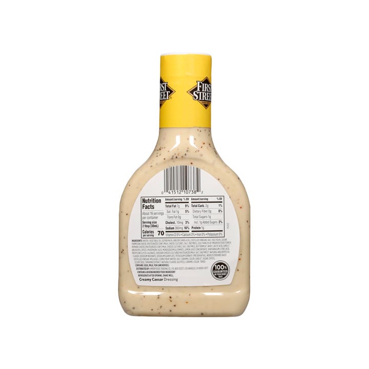 El tradicional aderezo César de 473 mililitros de la marca que te da la mejor calidad First Street, un producto que saboreara tu familia en cada bocado. Disfruta de la deliciosa combinación del aderezo con tus recetas preferidas. Puedes adquirir más productos similares en nuestra categoría de abarrotes. Contamos con la calidad garantizada de todos nuestros productos de marca propia.