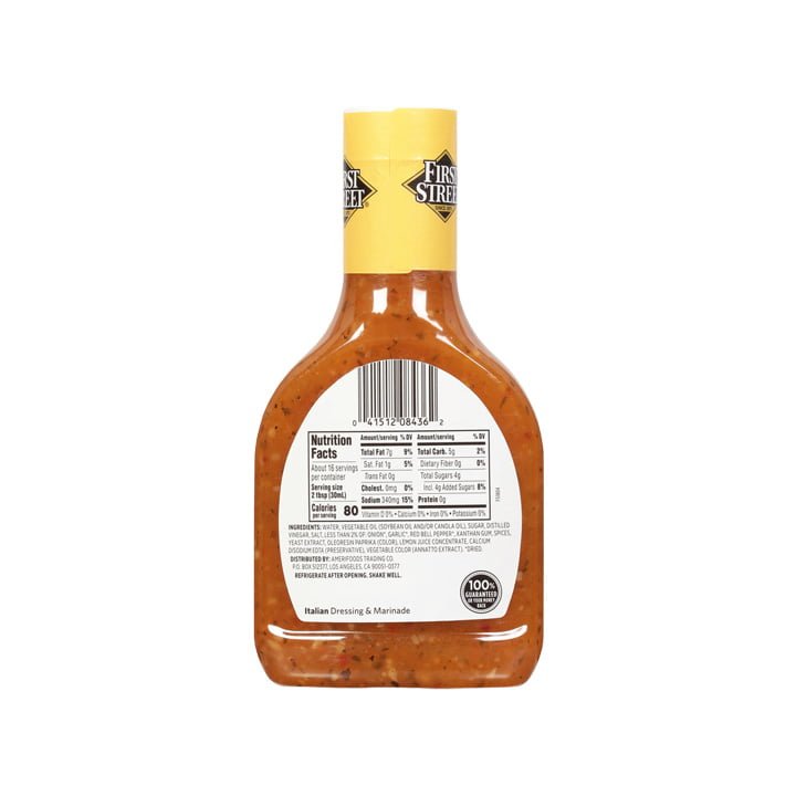 El aderezo italiano de 473 mililitros de la marca que te da la mejor calidad First Street, es un producto que saboreará tu familia en cada bocado.