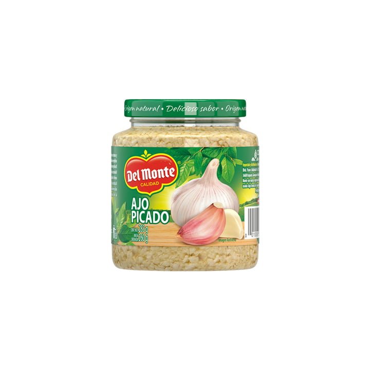 Sazona tus comidas con el ajo picado Del Monte de 283 gramos, ideal para darle el toque de sabor a tus platillos y consentir a tu familia.