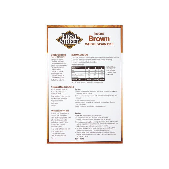Lleva a casa y prepara el arroz integral instantáneo First Street, encuéntralo en su presentación de 794 gramos y preparalo a tu estilo. Las guarniciones y comidas no podrían ser más sencillas y deliciosas, disfruta de su sabor integral.