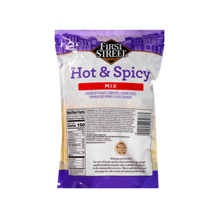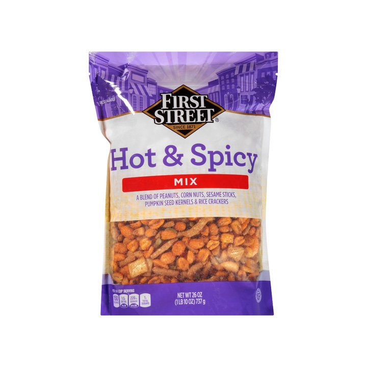 La botana hot & spicy de First Street es el snack perfecto por su combinación de cacahuate, semillas de calabaza, corn nuts y palitos de sésamo. Disfrutalos en compañía de tus amigos con su presentación de 737 gramos. Cuenta con calidad garantizada al ser un producto de marca propia.