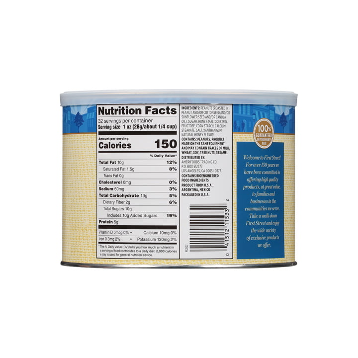 El Cacahuate dulce y tostado First Street es un producto delicioso y nutritivo, ya que el cacahuate tiene un sabor agradable, aporta grasas buenas que favorecen al organismo para mantenerse saludable, contiene antioxidantes y nutrientes con propiedades anticancerígenas, aporta vitamina B3 que es fundamental para la salud mental y vitamina E para tener piel saludable.