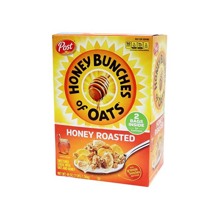 Prueba el delicioso cereal de avena con miel tostada de Honye Bunches, con granola y de la marca Post de 1.36 kilos.