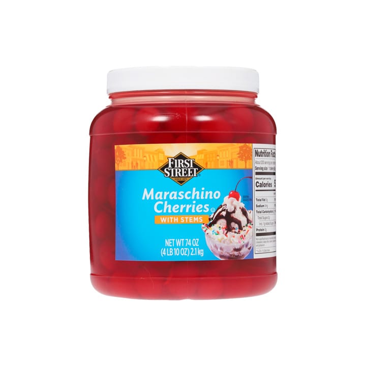 First Street te ofrece las deliciosas cerezas maraschino con tallo, perfectas para decorar tus postres y darles un toque extra de dulzura. Encuéntralas en su presentación de 2.1 kilos, en su práctico frasco que las conserva por más tiempo.