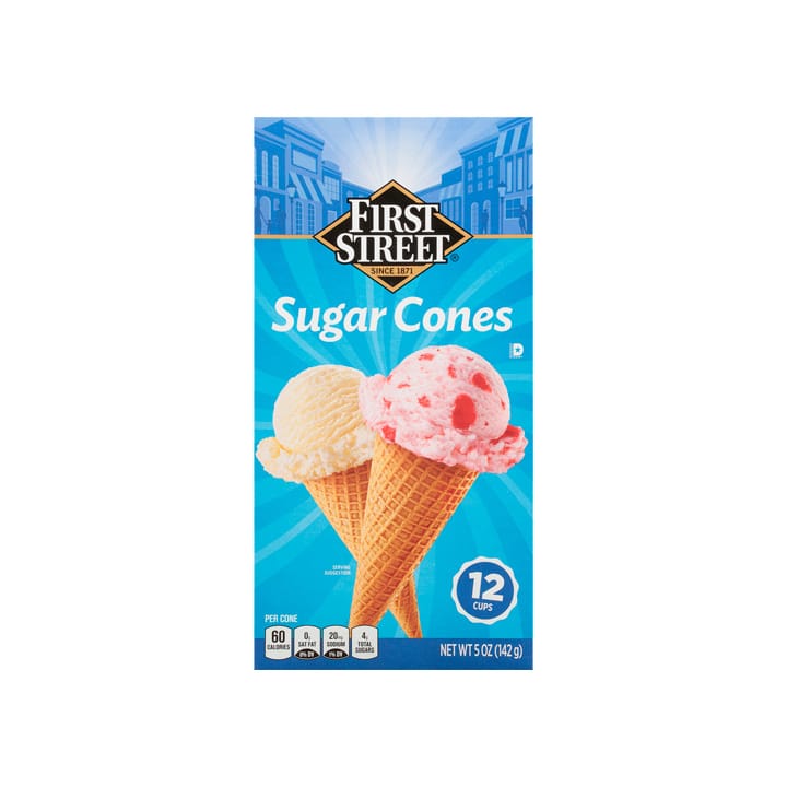 Acompaña tu nieve y helado favorito con una rica base de galleta… ¡así es! con un cono de azúcar First Street. Encuentra el paquete de 142 gramos con 12 piezas.