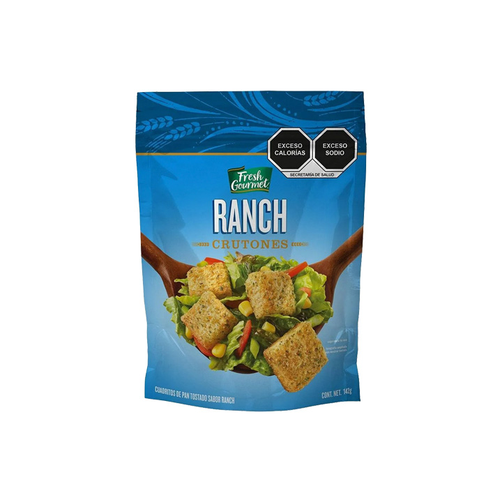 Para que tengas una alimentación sana debes de comer una ensalada con lechuga, tomate, zanahoria, agrégale aderezo y por último crutones ranch Fresh 142g con un rico sabor que te gustara, los podrás encontrar en el área de abarrotes.