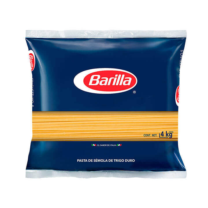 Adquiere en cualquier sucursal de Smart and Final la pasta spaghetti en su presentación de 4 kg. Está elaborado con los siguientes ingredientes: Pasta de sémola de trigo duro, agua, sulfato ferroso, niacina, Vitamina B1, Vitamina B2 y ácido fólico. Puedes adquirir más productos similares en nuestra sección de abarrotes.
