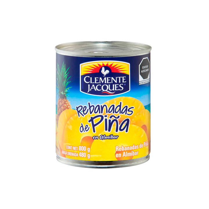 Opta por integrar a tus platillos las rebanadas de piña en almíbar Clemente Jacques, en su presentación de 800 gramos.