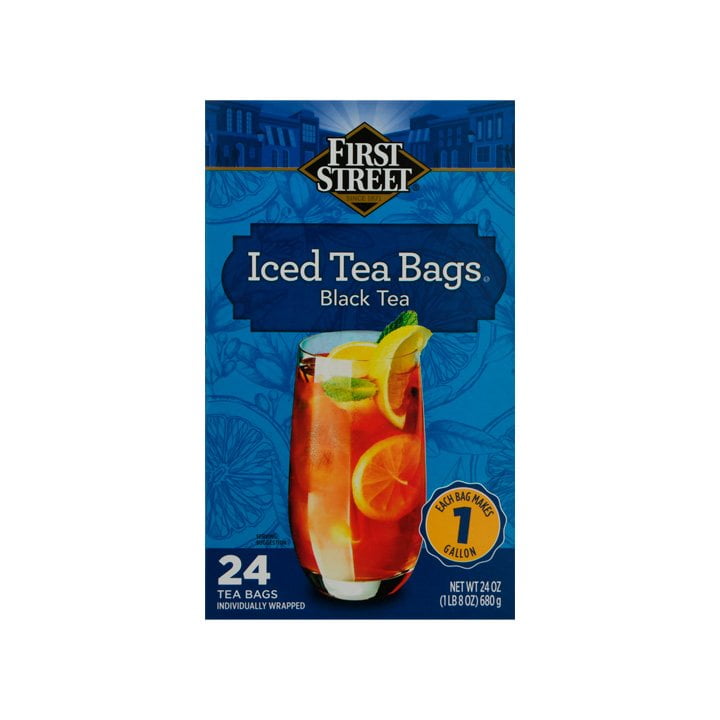 Disfruta de un rico Té negro frío de la marca First Street.