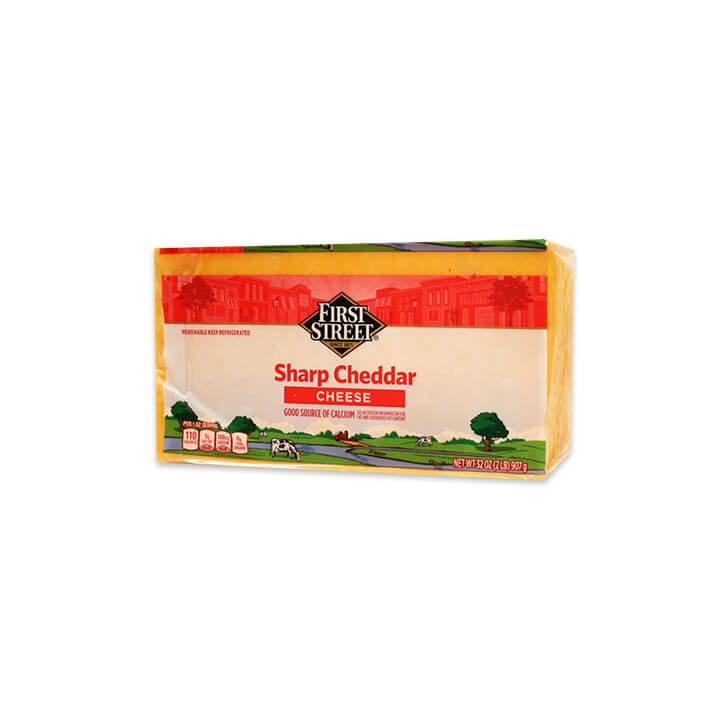 Si lo que buscas es un queso rico, nutritivo y que te aporte una buena cantidad de calcio, ¡tenemos lo que buscas! El queso cheddar en barra First Street en su presentación de 907 gramos.