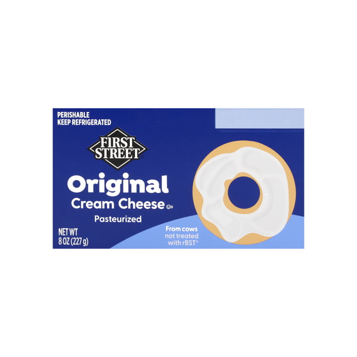 Degusta el sabor del queso crema original First Street, hecho con leche de vacas californianas. Comete una rica tostada, prepara una salsa chipotle o disfruta unas rajas con elotitos con su presentación de 227 gramos.