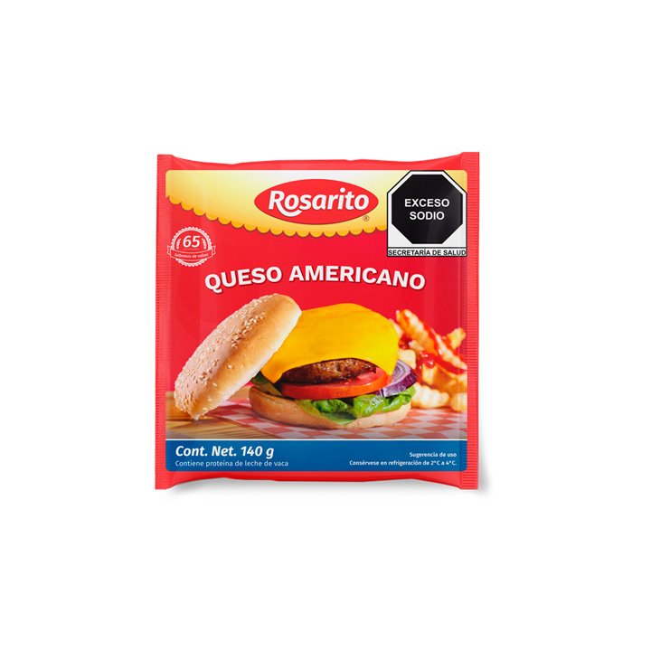 Lleva el queso amarillo rebanado Rosarito de 140 gramos contigo y haz de tus preparaciones algo único.