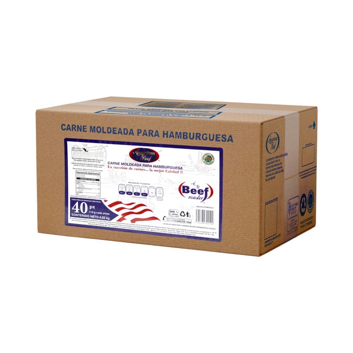 Carne moldeada para hamburguesa beef master de American Beef.