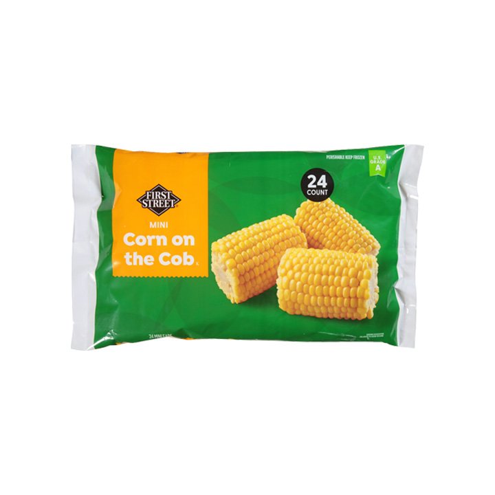 Disfruta de un rico elote amarillo con el elote entero congelado de First Street en su presentación de 24 piezas, perfecto para compartir y que nadie se quede con el antojo.