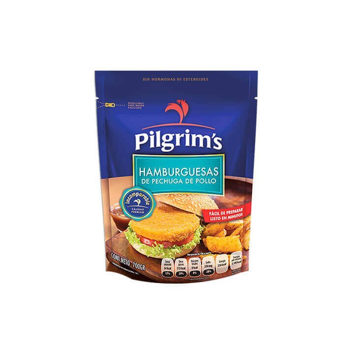 Las hamburguesas son un bocadillo perfecto para el fin de semana pero si te preocupa que solo sean de carne, prueba las hamburguesas de pechuga de pollo Pilgrim´s en su presentación de 700 gramos.