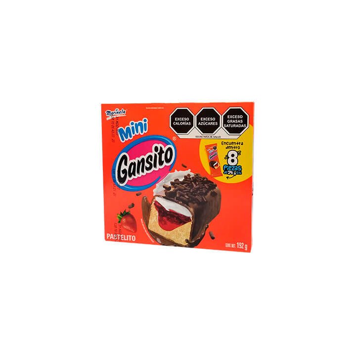 Lleva a casa la caja de mini gansito Marinela con 8 piezas a casa para tener un rico snack para el día.
