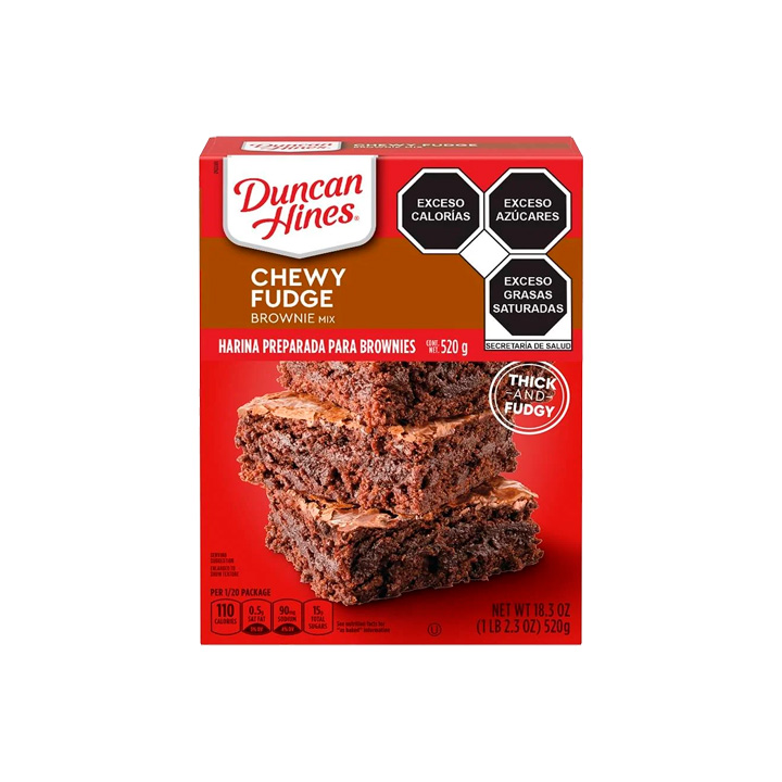 Consiente tu antojo de chocolate con la harina para brownies Chewy Fudge Duncan Hines 520 g. Su mezcla especial te permite preparar brownies irresistiblemente suaves, húmedos y con un intenso sabor a cacao. Perfectos para compartir en reuniones o disfrutar como un delicioso postre casero.
