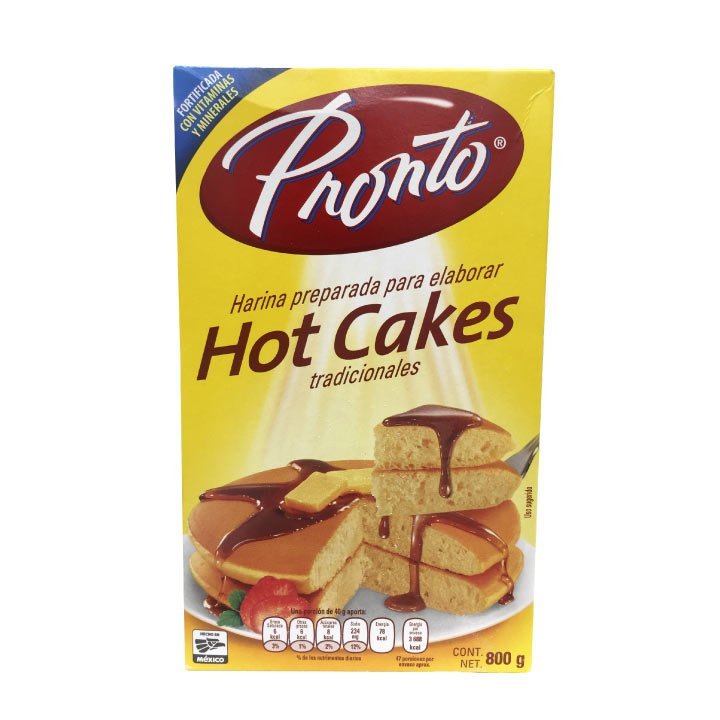 Adquiere la harina para hotcakes Pronto de 800 gramos y consiente a tu familia en el desayuno, puedes acompañarlos con Crema de avellana, crema de cacahuate o miel de maple.