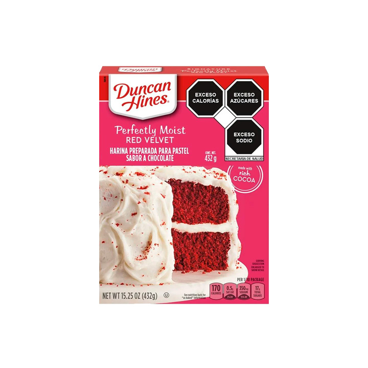 Sorprende con un postre elegante y delicioso con la harina para pastel Red Velvet Duncan Hines 432 g. Su mezcla lista para preparar ofrece una textura suave, un color rojo intenso y un sabor único, ideal para ocasiones especiales o para consentirte con un pastel digno de pastelería.