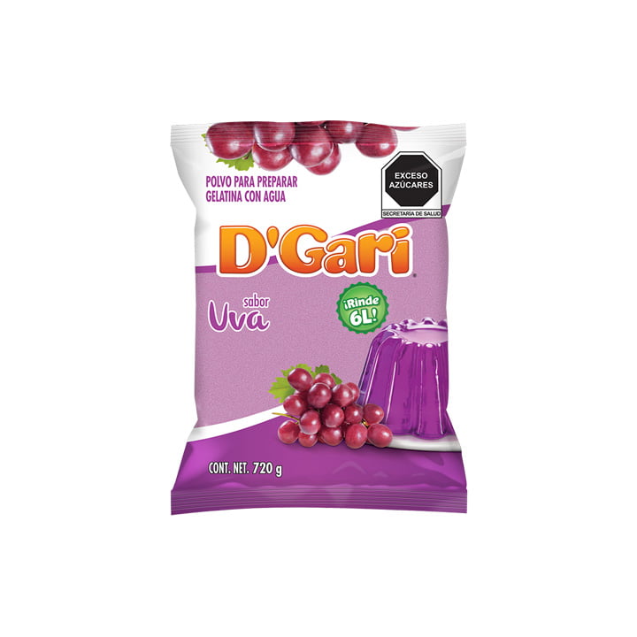 Polvo para preparar gelatina con agua sabor uva