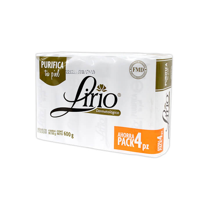 Purifica tu piel y dale el cuidado que necesita con el jabón para tocador dermatológico Lirio, en su empaque ahorra pack con 4 barras de 150 gramos cada una.