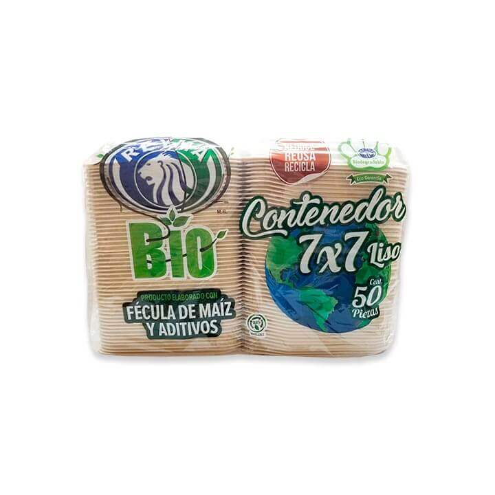 Ven adquirir los contenedores de 7×7 liso Reyma Bio en la presentación de 50 piezas.