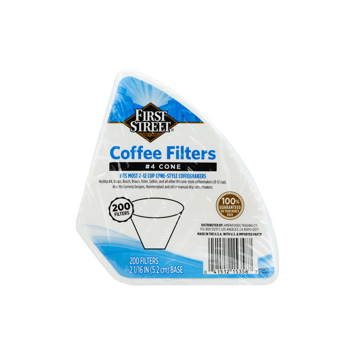 Adquiere ya nuestro Filtro para cafetera #4 de first street en su presentación de 200 piezas que tiene la función de filtrar el agua caliente de los granos molidos; para la elaboración de un excelente café.