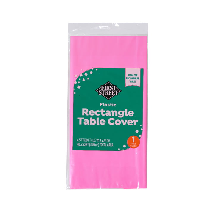 Adquiere el mantel rectangular rosa First Street, ideal para tus fiestas o cualquier evento por sus medidas de 1.37 x 2.74 metros.