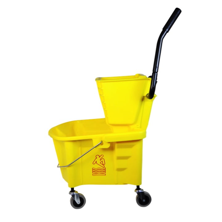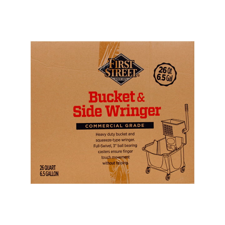 La cubeta con exprimidor de First Street evita salpicaduras y es ideal para realizar la limpieza en cualquier lugar ya que tiene capacidad de 24 litros.