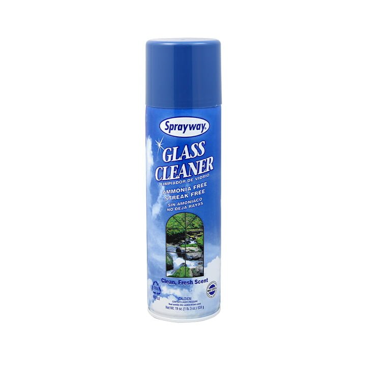 Utiliza el limpiador para vidrios sin amoníaco en su presentación en aerosol de la marca Sprayway.