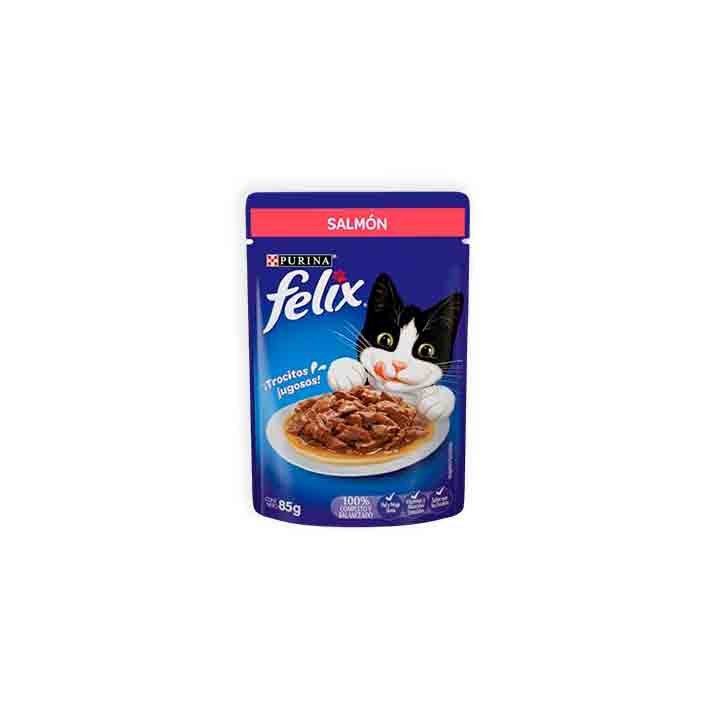 Nuestros felinos son parte de la familia, por eso aliméntalos sanamente con trocitos de salmón Felix de Purina 85 gramos, tiene ingredientes que mantendrán a tu gato saludable y contento, con huesos y dientes fuertes.