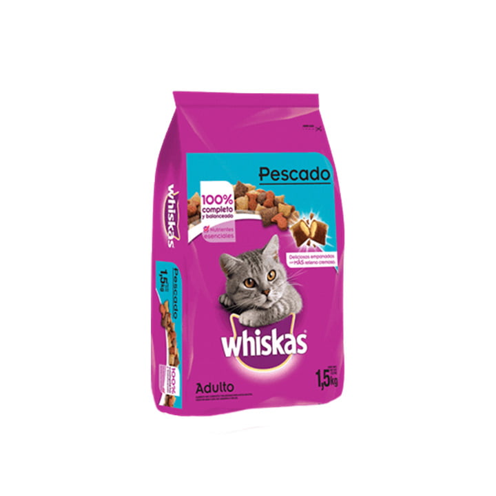 Adquiere el alimento sabor a pescado para tu mascota de la marca Whiskas en su presentación de 1.5 kg y su contenido alto en nutrientes, vitaminas y minerales necesarios para que tu mascota esté sano y contento, los encontraras en el área de mascotas.