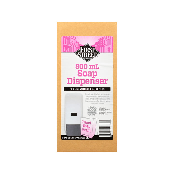 El dispensador para jabón de First Street es práctico para negocios ya que tiene capacidad de hasta 800 mililitros. Basta con presionar el botón de enfrente para conseguir la cantidad exacta de jabón que necesitas para un buen lavado de manos.