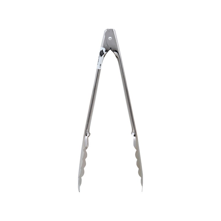 Pinzas de metal con resorte de 9.5 pulgadas de First Street ideales para tomar alimentos como pan, tamales o carne asada.